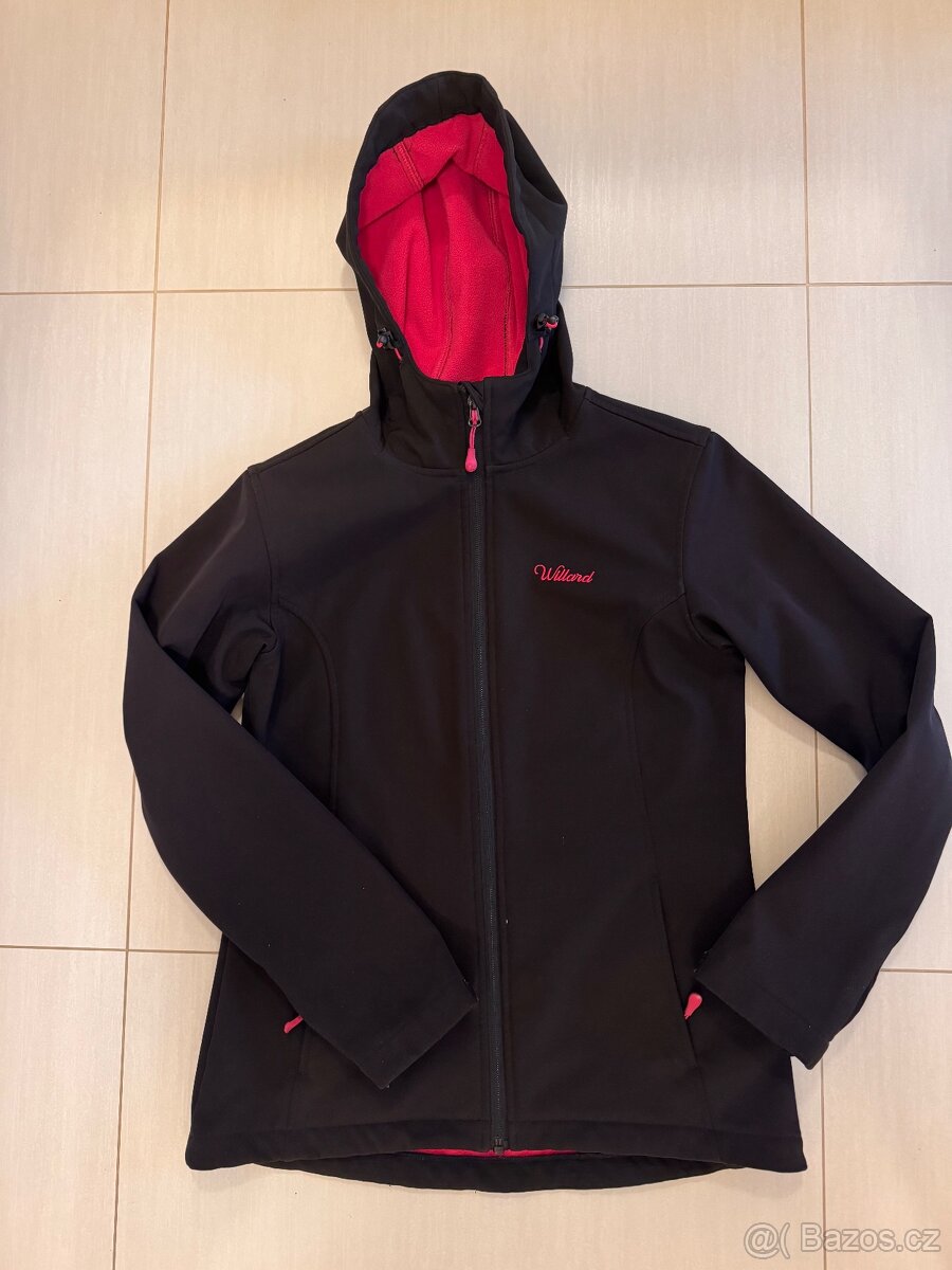 1. Černa softshellova bunda, vel. S, rozměry: ramena 41 cm, spodní šířka 50 cm, od podpazdi 42 cm, rukáv 60 cm, cena 200 Kc