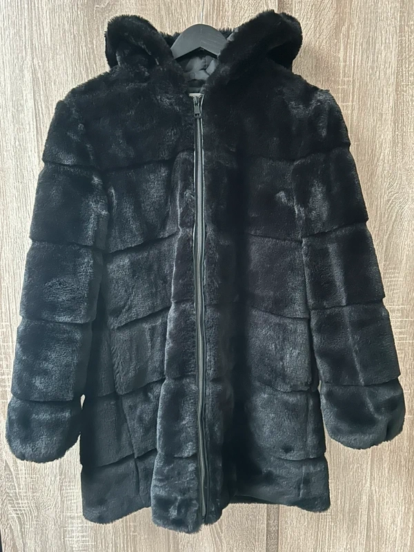 Dámský zimní kabátek - [4.4. 2026]Kabát černý z polyakrylu, imitace kožichu. Prsa: 104 cm, pas: 96 cm, boky: 104 cm, délka: 95 cm, rukáv: 60 cm. Málo nošený dobrý stav.