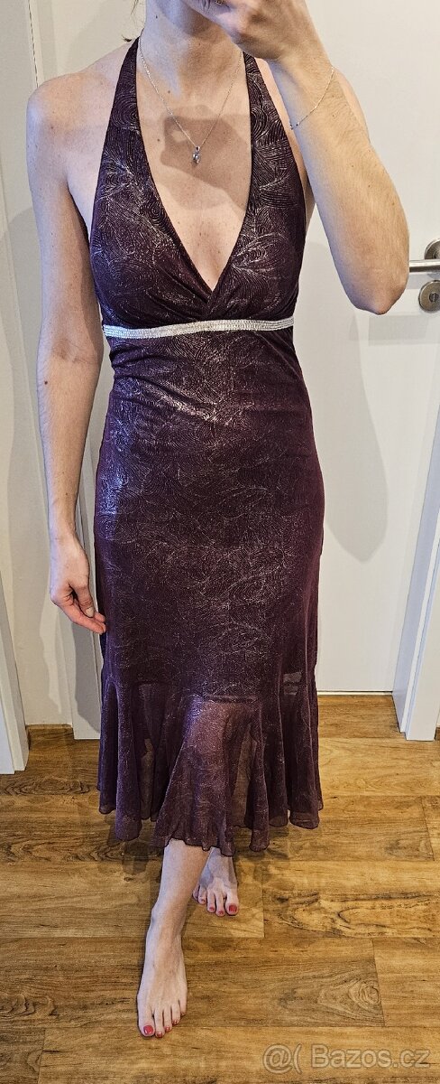 Od stříbrného pasku je délka 89 cm, pod prsama je gumička, takže hezky sednou, prsa nemají vycpávky. Velkosti S/M. 1x použité, jako nové, nepoškozené. Stříbrná jemná kresba. Kamínky nevypadane, jemné, hezky drží. Odesílám přes zasilkovnu. Možný osobní odběr Praha.